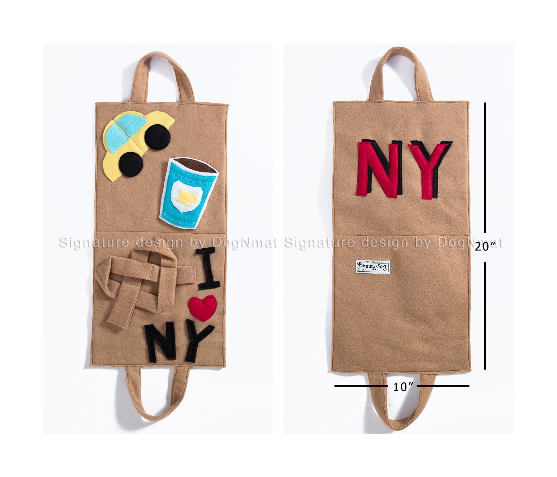 For NYC, the city that never sleeps, you and your pet will find a taxi, coffee cup, pretzel, and the iconic ‘I ❤️ NY’.
