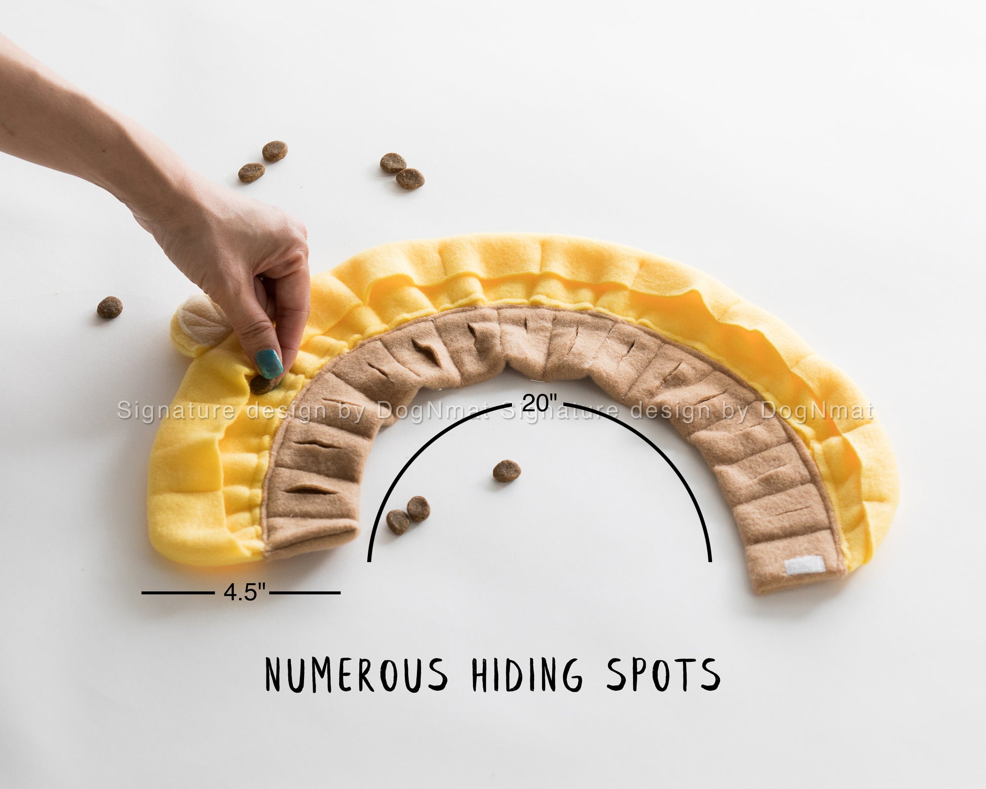 All our snuffle mats are our signature design, handmade in USA. This snuffle toy has numerous spots to hide treats.