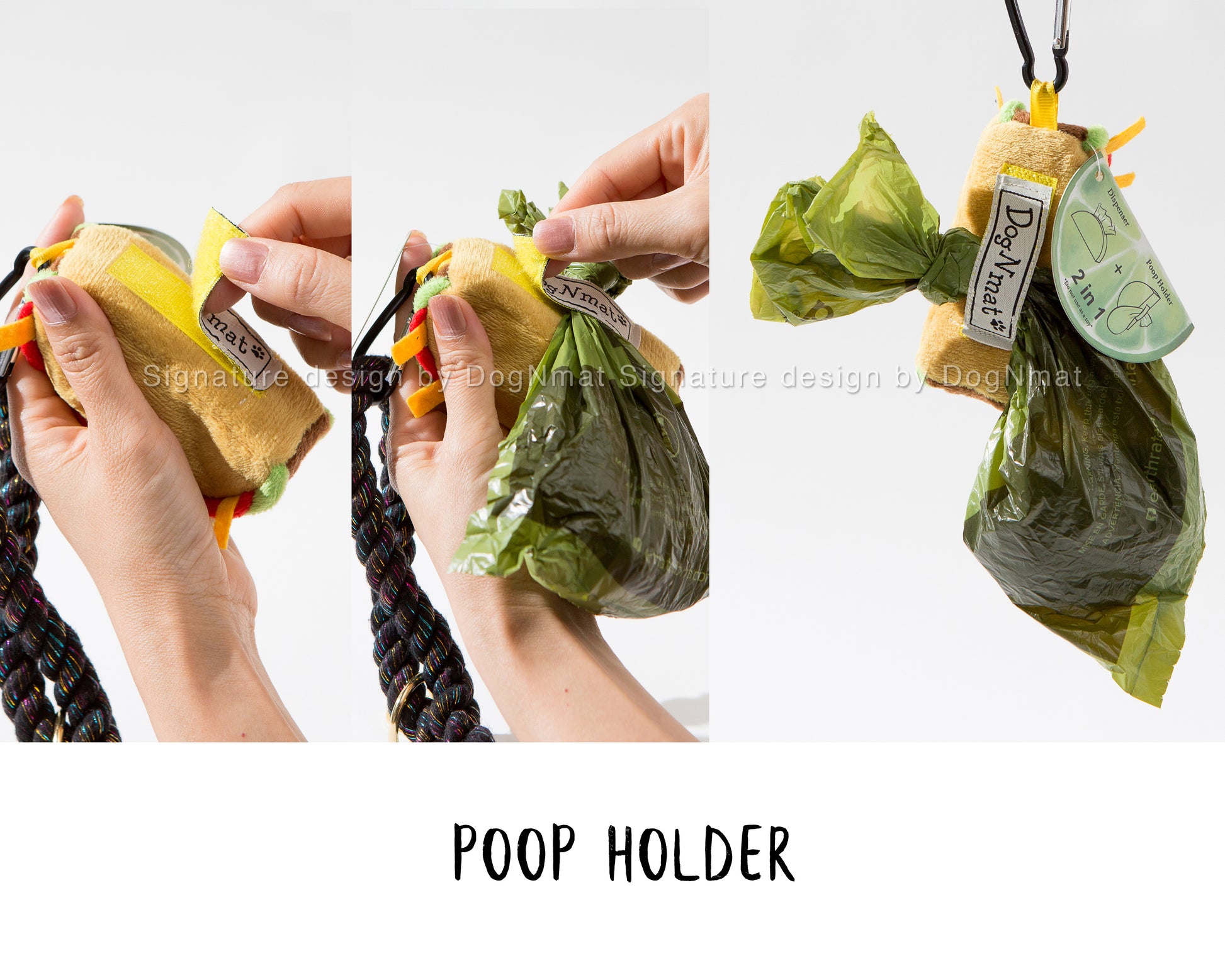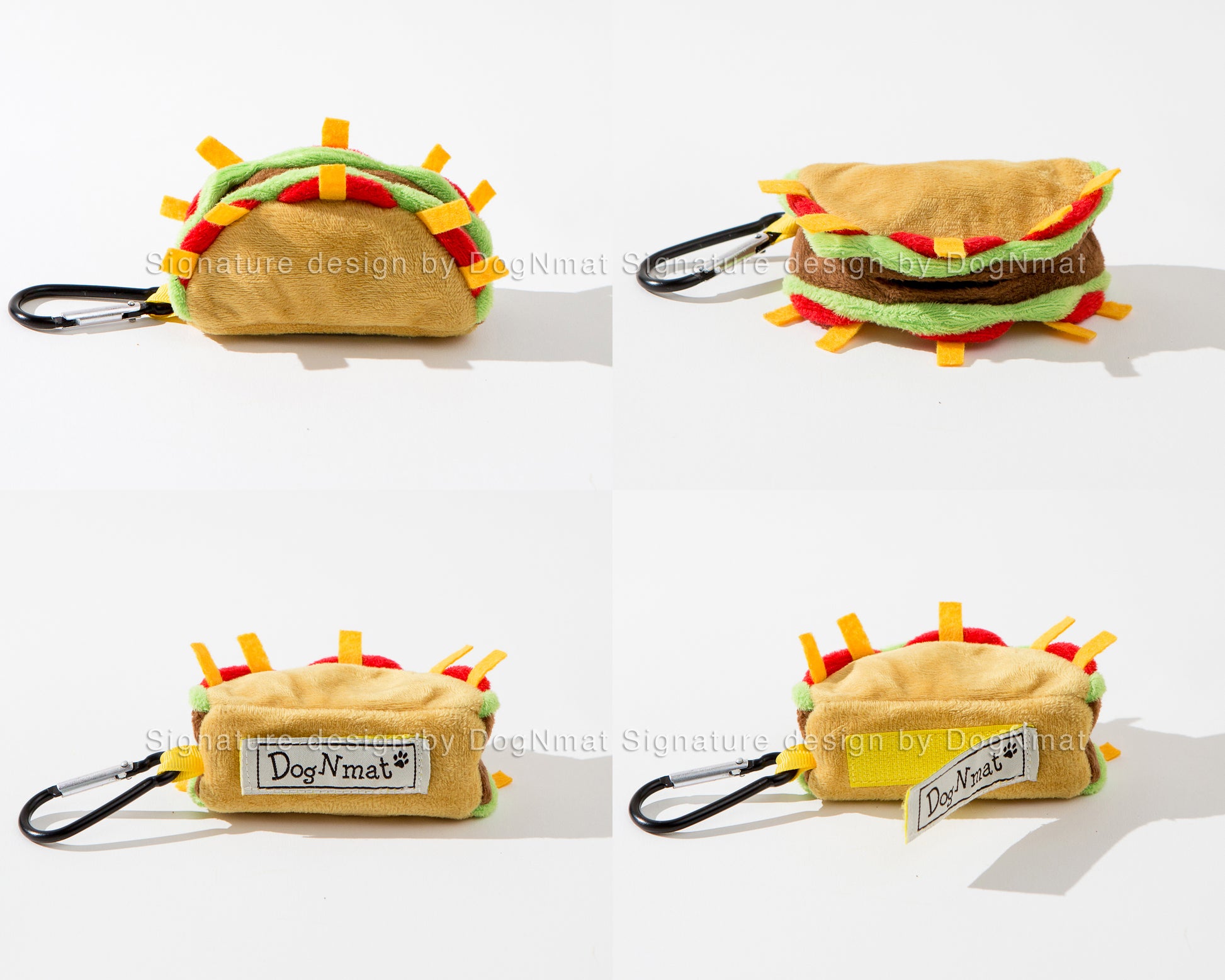 Inspired by our best selling Taco Snuffle Mat, we designed a one-of-a kind poop bag dispenser that can hold the waste bag too. That way you don’t need to carry a stinky bag during a pleasant walk.
